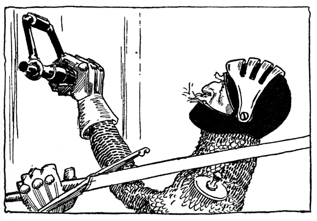 "Find the man who fits the King's robe," cried Tora, waving his tape measure. "Try him," he finished, indicating Sir Hokus of Pokes.
