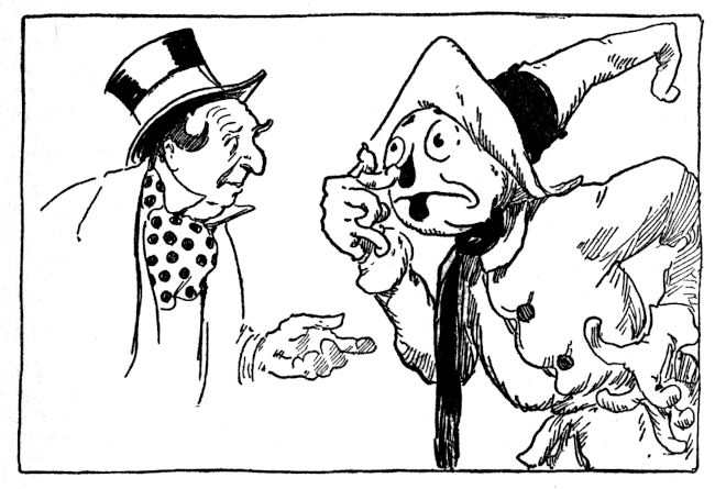 Mombi's screams, Pajuka's threats and Kabumpo's trumpeting almost drowned out another voice that had risen triumphantly above the confusion. It was Snip. Jumping to his feet and running across the room, the little button boy flung his arms 'round the old tailor.