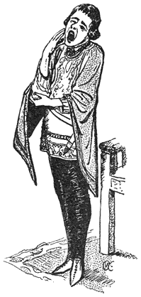 En den volgenden dag kwam er weer een bode, sierlijk gekleed, met wapperende veeren op den hoed, en hij sprak: „Majesteit, prins Perlus doorzocht het land, zooals hem geboden werd: Van Noord tot Zuid naar allen kant. Hij brengt de schoone gave, waardoor uw blindheid zal genezen.”