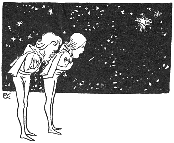 Milly zag niets dan wat even zichtbaar was: de glimmende kachelknop, het kastje met de beeldjes. Het was donker en stil om haar heen. Geen zoldering week, zoodat zij de sterren niet kon zien schitteren; geen muren werden doorzichtig, zoodat zij de lichtlijnen niet van uit haar bed volgen kon. En toch was het licht, héél licht in Milly.