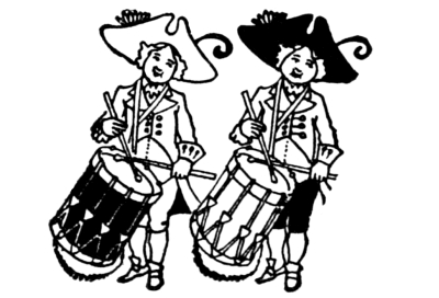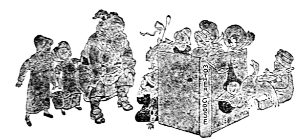 At the left of the counter stand two Soldier-boys with drums, paper caps, and epaulets.