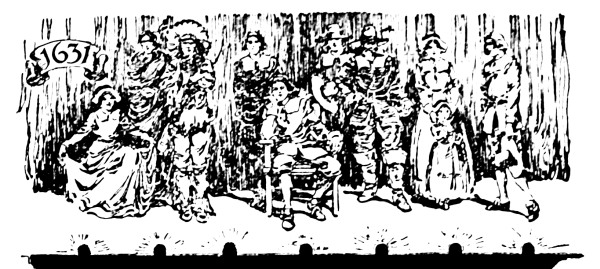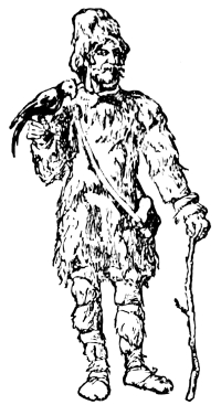 Dr. Johnson. [Shaking his massive silver-headed cane indignantly.] Sir, you are impertinent as well as improvident! Disturbed at my sixth cup of tea, barely half my usual allowance, as Miss Williams will testify, I hasten hither only to find that your most pressing necessities are such as can be supplied from the nearest tavern. The gold I despatched by your messenger, as from one literary [Pg 216] man to another, I could ill spare, and, since I find you in affluence [Goldsmith turns out his empty pockets ruefully] and employed in a manner eminently befitting your talents, I will bid you good day without further ceremony! [Paces solemnly toward the door.]