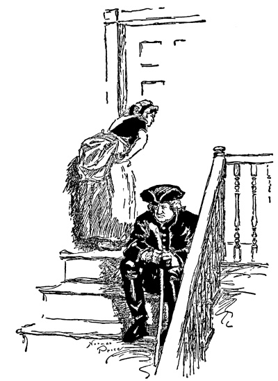 Dick. I’d a deal of trouble to give the letter to the old gentleman in the Temple. Frank, the black man-servant, said at first that his master, who could write a great book like the dictionary, all out of his own head, had no call to be bothered with forward London lads. Then he made me wait a long time while Dr. Johnson drank tea with [Pg 212] Miss Williams, the little old blind lady that lives there. But at last the Doctor read your letter and gave me this one for you, with a penny for myself. Then he called very loud for a man-servant, and said a lot of things I couldn't rightly understand, the words were so long; but he said “Scatter-brain!” at the end. Could that mean you, sir?