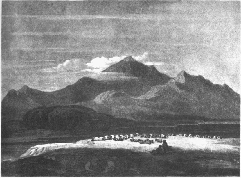 The sky is first coloured with indigo and Indian red; afterwards, in parts, with indigo alone. The whole of the landscape is shaded with indigo and Indian red, finished with Vandyke brown and brown pink; the sheep, with a warm grey of indigo and light red, tinted with yellow ochre.