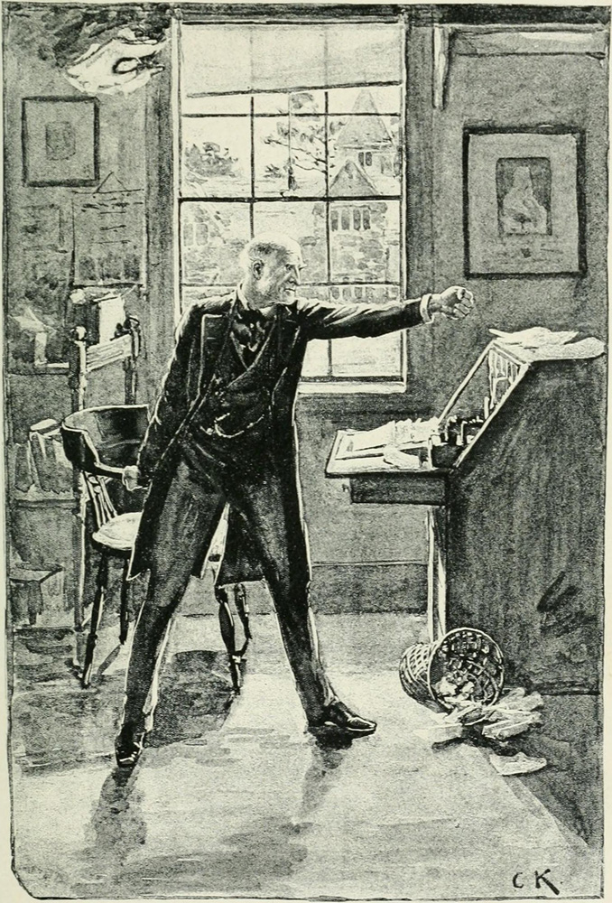 Mr. Cardus paused, breathing quick with suppressed rage and excitement; the large white eyebrows contracted till they nearly met, and, abandoning his usual habit, he looked straight into the eyes of the abject creature in the chair before him.