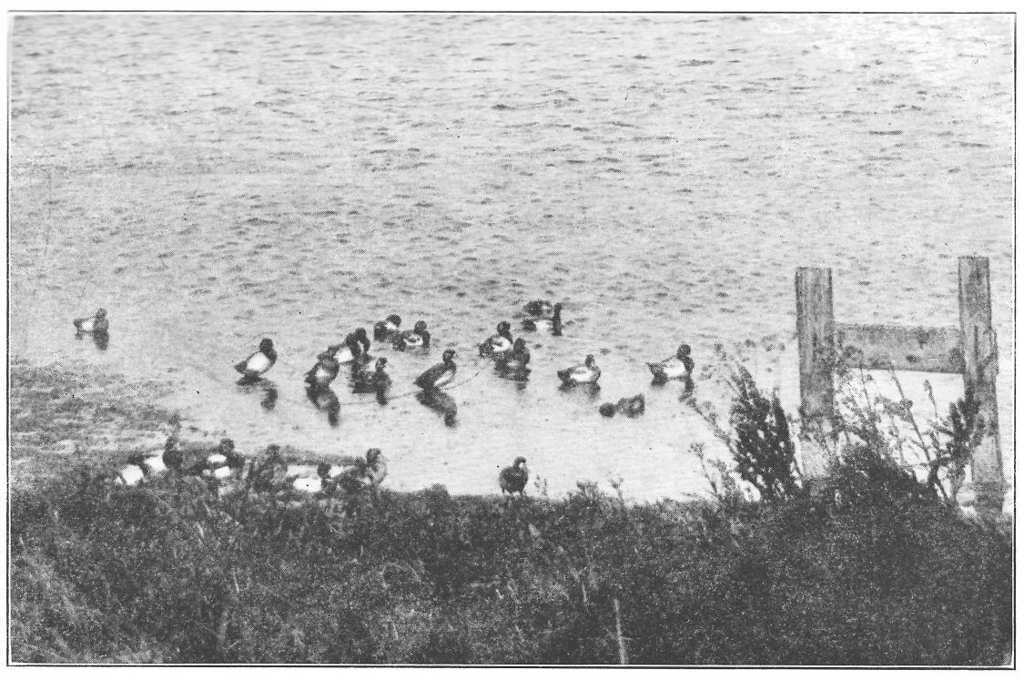 Sitting in a clean sandbank, and safe, no doubt, I soon got intent on my birds. Never before had I seen so many grebes. There were easily half a thousand of them swimming about in such close communion that they jostled one another, all pied-bills. I saw no alien among them. Some rocked on the wavelets, their heads down between their shoulders, seeming half asleep. Others fed industriously. The water of the shallows along