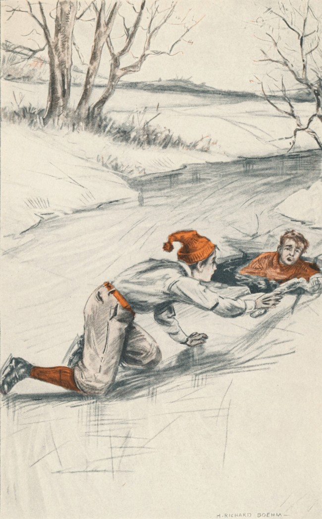 But at that moment Ben Holden, swinging by, caught sight of the two boys and skated up to the boards.
