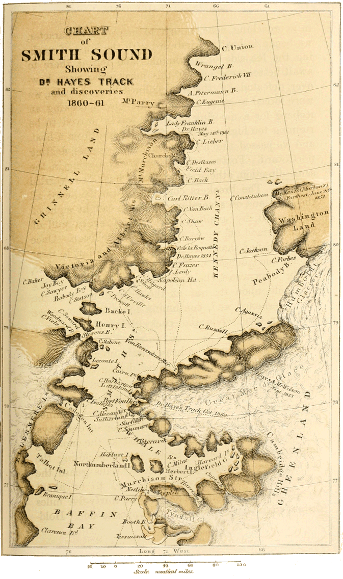 | 2. | MAP OF SMITH SOUND, SHOWING DR. HAYES' TRACK AND DISCOVERIES | 72 |