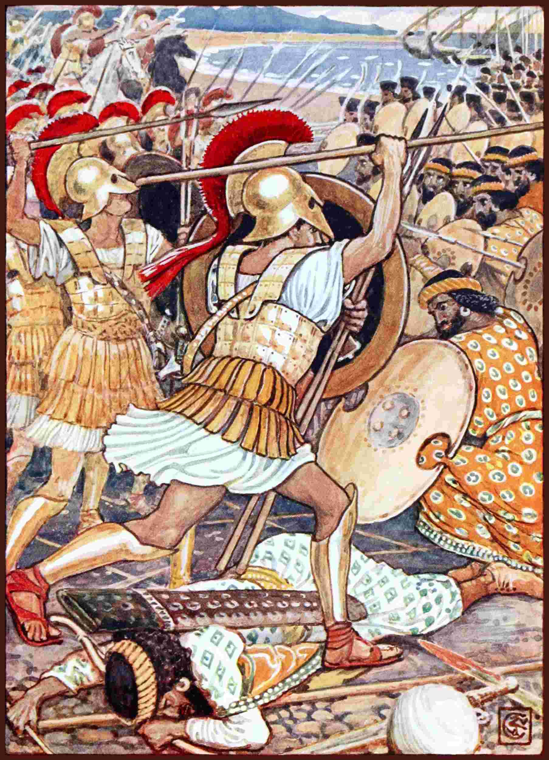 The whole Macedonian army had now joined the king, and a desperate battle was fought. Hour after hour the conflict raged, neither side gaining the victory.