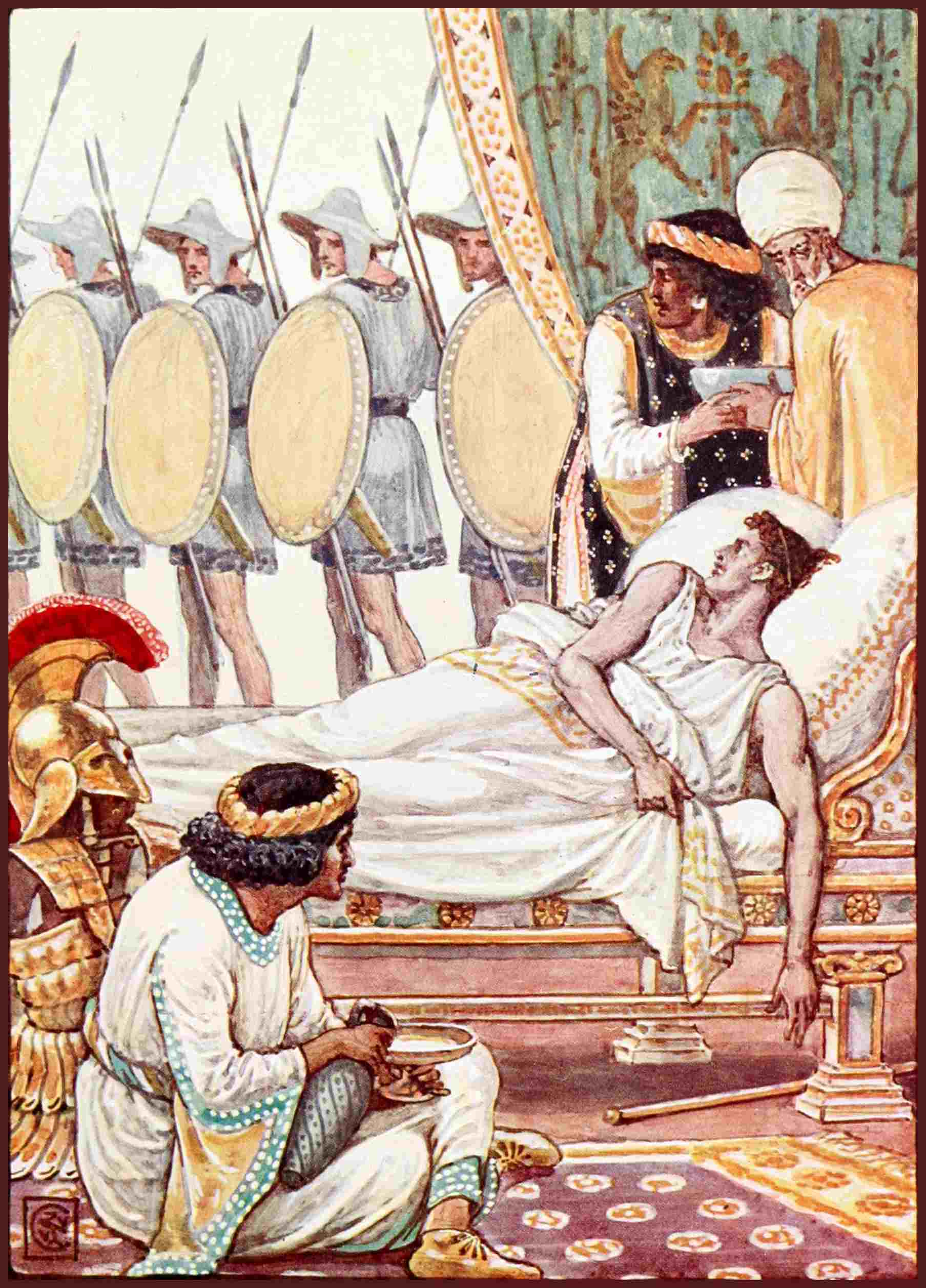Alexander was not dead, but he was too weak to speak, as one by one the soldiers were permitted to walk quietly past his bed. With an effort he looked at them as they passed, and feebly raised his hand in farewell.