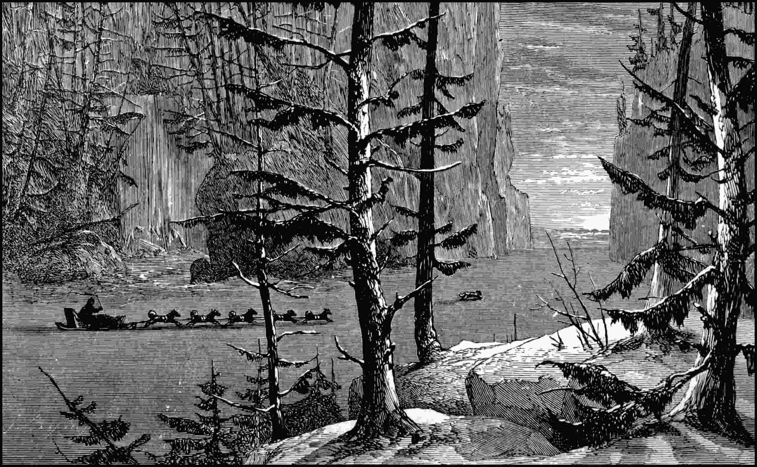 Many tracks lay before me in that immense region I call “The Wild North Land.” Former wandering had made me familiar with the methods of travel pursued in these countries by the Indian tribes, or far-scattered fur-hunters. Fortunate in recovering possession of an old and long-tried Esquimaux dog—the companion of earlier travel—I started in the autumn of 1872 from the Red River of the North, and, reaching Lake Athabasca, completed half my journey by the first week of March in the following year. From Athabasca I followed the many-windingvii channel of the frozen Peace River to its great cañon in the Rocky Mountains, and, journeying through this pass—for many reasons the most remarkable one in the whole range of the Rocky Mountains—reached the north of British Columbia in the end of May. From thence, following a trail of 350 miles through the dense forests of New Caledonia, I emerged on the 3rd of June at the frontier station of Quesnelle on the Frazer River, still 400 miles north of Victoria.