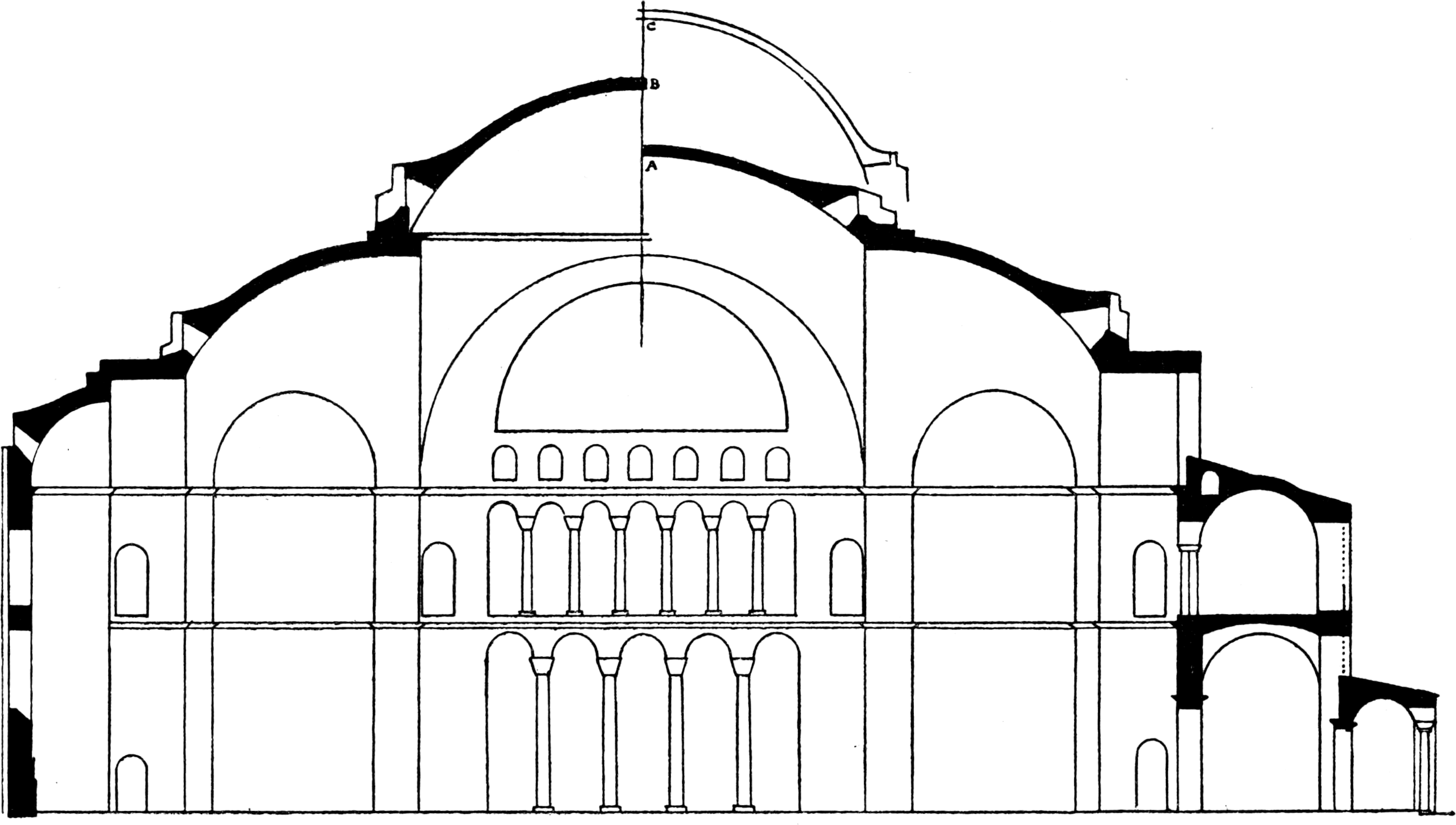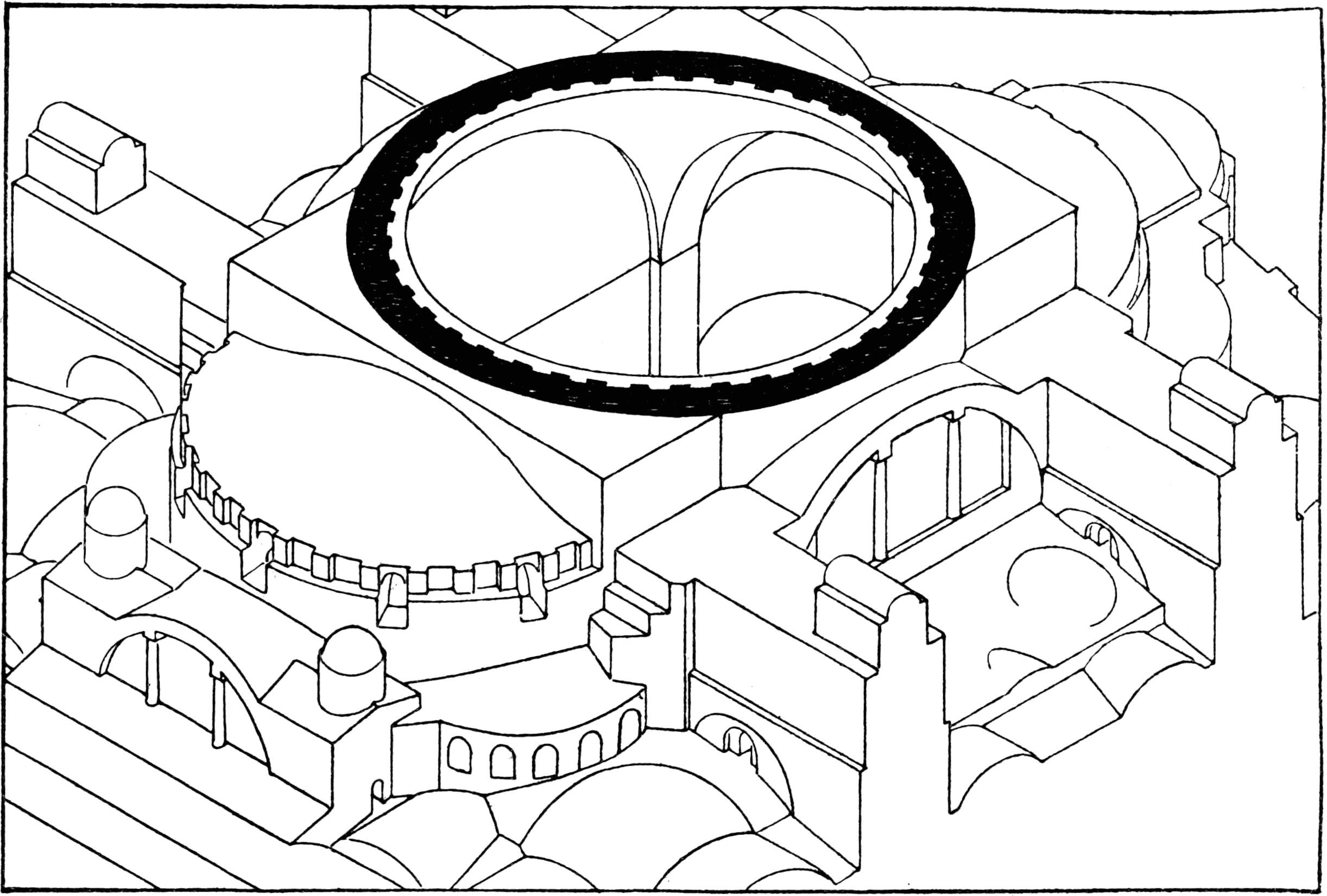Sancta Sophia is the most interesting building on the world’s surface. Like Karnak in Egypt, or the Athenian Parthenon, it is one of the four great pinnacles of architecture, but unlike them this is no ruin, nor does it belong to a past world of constructive ideas although it precedes by seven hundred years the fourth culmination of the building art in Chartres, Amiens, or Bourges, and thus must ever stand as the supreme monument of the Christian cycle. Far from being a ruin, the church is one of the best preserved of so ancient monuments, and in regard to its treatment by the Turks we can only be grateful that S. Sophia has not been situated in the more learned cities of Europe, such as Rome, Aachen, or Oxford, during “the period of revived interest in ecclesiastical antiquities.” Our first object has been to attempt some disentanglement of the history of the Church and an analysis of its design and construction; on the one hand, we have been led a step or two into the labyrinth of Constantinopolitan topography, on the other, we have thought that the great Church offers the best point of view for the observation of the Byzantine theory of building.