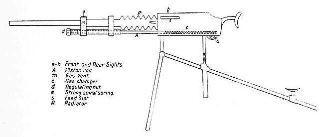 The modern machine gun is essentially an automatic weapon of small-arm calibre, capable of firing from 100 to 600 shots a minute from a light mounting of extreme mobility, and should fulfil the following qualifications: