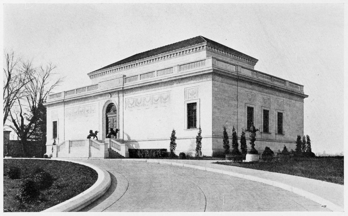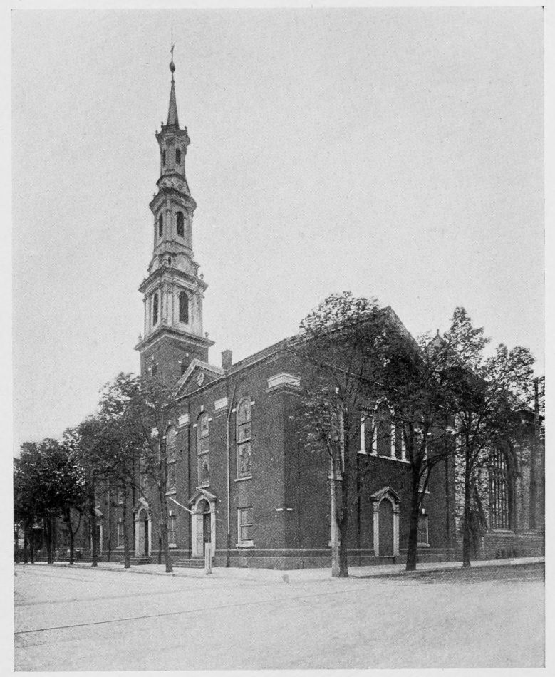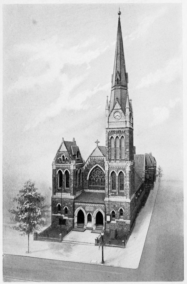 Second Presbyterian Church, Jefferson Avenue between Vine and Mulberry Streets, Romanesque; West, Mountain stone, built 1885; has Tiffany windows, “Charity” and “Hope.” Madison Avenue Synagogue, near Vine Street; Byzantine, West Mountain stone,{508} built 1902, architect, George W. Kramer, New York. First Presbyterian Church, corner of Madison Avenue and Olive Street, perpendicular Gothic, Indiana limestone; built 1903, architect, Holden, New York; windows by John La Farge, “The Woman at the Well”; and by Tiffany, “The Ascension”; Tiffany mosaic, “Pentecost.” Immanuel Baptist Church, corner of Jefferson Avenue and Mulberry Street, Gothic, Hummelstown redstone, built 1909, architect, Edward Langley, Scranton. Elm Park Church, corner of Linden and Jefferson Streets, Romanesque, West Mountain stone, built 1892, architect, George W. Kramer.