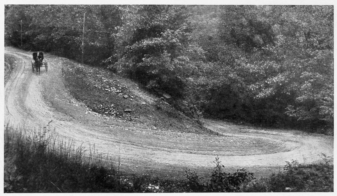 At Carbondale, crossing Moosic Mountains, is road to Honesdale, following the line of the old Delaware & Hudson gravity road; at Dundaff, about five miles north of Carbondale, this road runs along the edge of Crystal Lake, near are the Twin Knobs of Elk Hill, about 2500 feet high. A point of geologic interest is the Archbald Pot Hole, said to be largest of the kind in this country; a cylindrical hole twenty feet deep, by thirty feet wide, eroded in the ice age through the overlying rocks down to the coal measures.