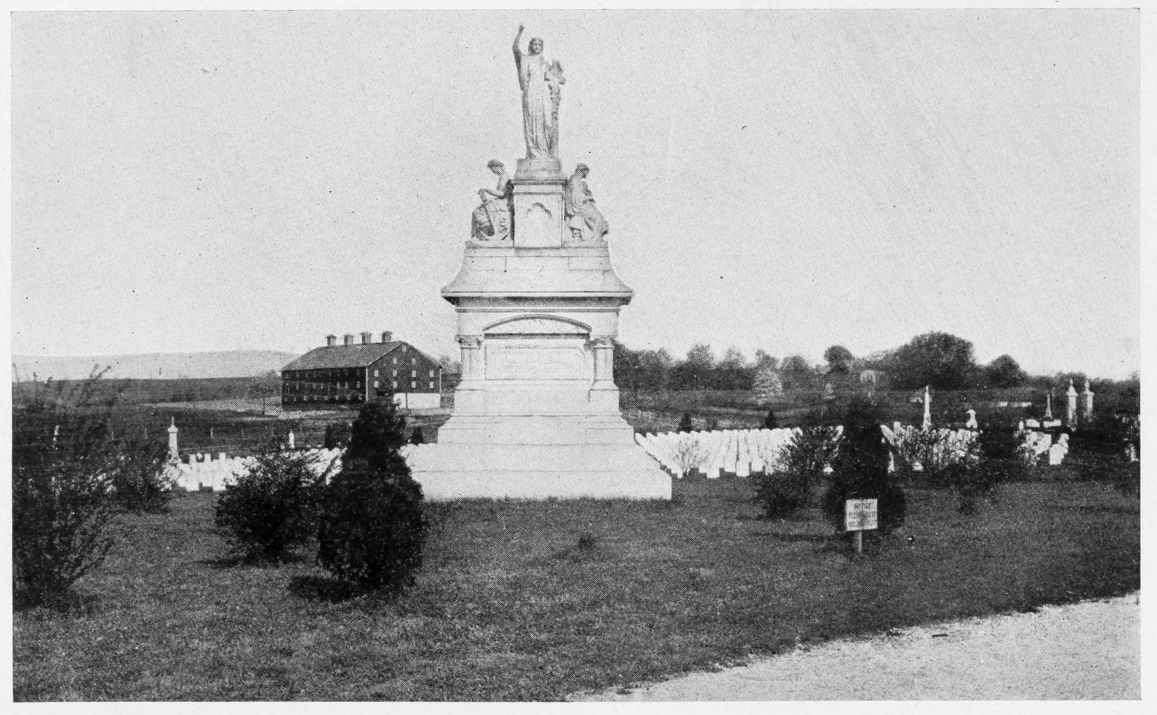 Among the six churches are the Methodist and Presbyterian, stone, Roman architecture. The Woman’s Club has accomplished much for civic improvement, changing the cemetery from an unsightly spot to a place of beauty, planting the park with shrubbery and flower beds, and starting a free public library; in the park is a monument to Civil War soldiers. At Foxburg is a fine free, memorial library; colonial; native sandstone; architect, Arthur H. Brockie, Philadelphia. In the “Memorial Church of Our Father,” native sandstone; architect, James Sims, Philadelphia; is a painting by Edwin Howland Blashfield, “The Angel of the Resurrection.{455}”