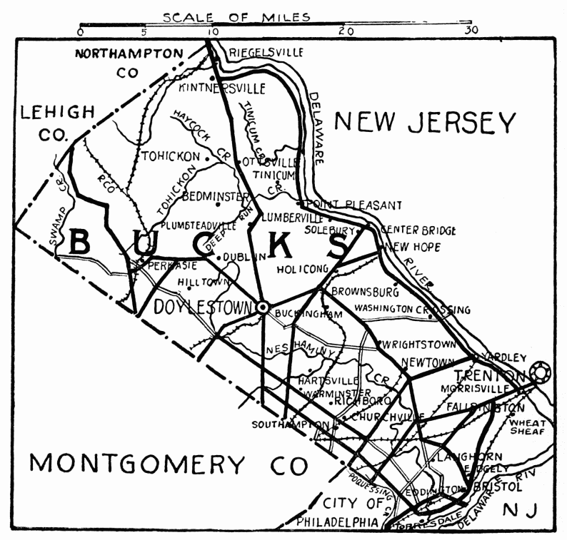 This book, finished for publication in 1917, was placed in the vaults of the Historical Society of Pennsylvania, as all money was needed for our soldiers. The present committee, appointed by Mrs. Hamme, has decided to publish the work as compiled in 1917, and not delay it by trying to bring the sixty-seven counties up to date. Conditions have been so unfavorable for new construction, since the war, that little has been done. The population of towns, however, has been advanced to the 1920 statistics.