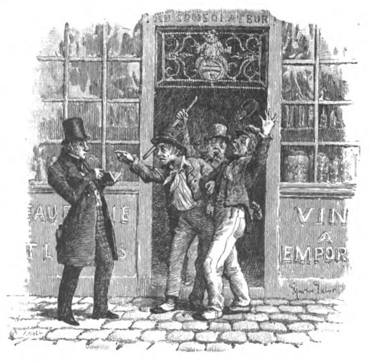 They advised him to take exercise; and, as the idea amused him, we started out early one day, for I could not trust him to go a step alone. We turned toward the quays, and I was rejoicing because I thought that the sight of the river would revive him; but he never took his eyes from the level of the parapets. They were as free from show-cases as if they had been visited early in the morning by the public censor, who in February had sent the archiepiscopal library in swimming.[4] We were more fortunate at the Quai aux Fleurs, where books were in profusion.{46} But what books! All the works which the newspapers had puffed during the last month, and which had gone from the