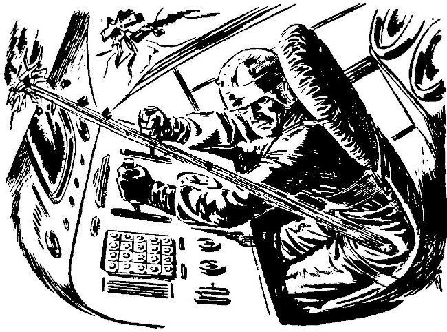 The hull mockup illuminated, he searched for the point of impact on the electronic three-dimensional damage guide. No wonder all the rough stuff; it turned out to be a good-sized crater above the control compartment. Perhaps it hadn't been as bad elsewhere. There was no penetration, but after that wallop he wasn't looking forward to any.