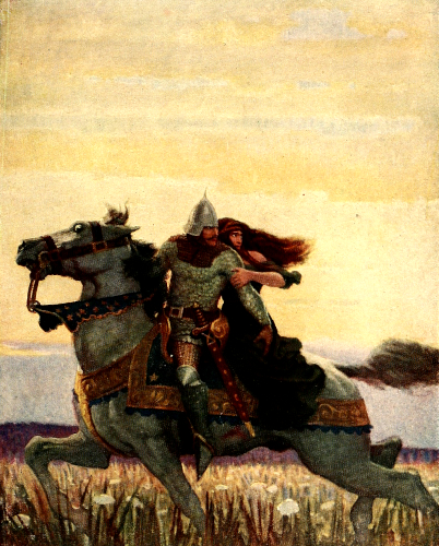 [18] We have here the beginning of that series of quarrels which presently arrays Sir Gawaine and King Arthur (who with many protests allows himself to be guided by Sir Gawaine) on one side, against Queen Guenever and Sir Launcelot (who has taken the queen's part) on the other, and which ends with the great battle in which Arthur is slain and the Round Table broken up for ever.