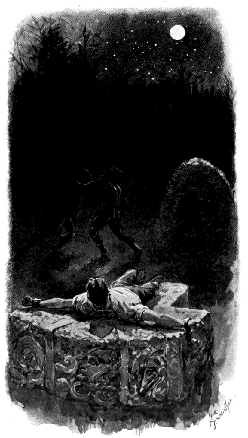 “I, Sagamoso, priest of the Council, tell it you. O men of white countenance! torture like to this,”—and he raised his twisted claw-like hands,—“torture of hot iron and 12seared flesh could not have wrung it from me. But if I be not buried with the rites of the dread god whose servant I yet am, I must walk forever in the outer darkness, weariness unutterable my portion throughout all ages. Because of the sin that I have sinned, the door of Shimra indeed is shut before my face, but the peace of nothingness is still within my grasp, and for that peace will I betray the secret of the city that has cast me forth, the secret of the jewels and the fragrant gums, the ivory and precious woods, the gold and rich garments and the wines of price, that lay hid within the bowels of the earth, and guarded by the name that may not be spoken.”