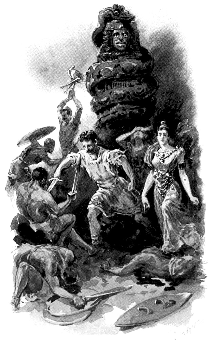 “For behold, I have given gifts of price to the Temple, yet doth fire from heaven even now destroy my household. Woe is me! but the magic of the white stranger is strong. Follow, my lord, and I will lead you to your friends. So shall the shadow of your protecting 244mantle fall upon me, and my miserable life be spared.”