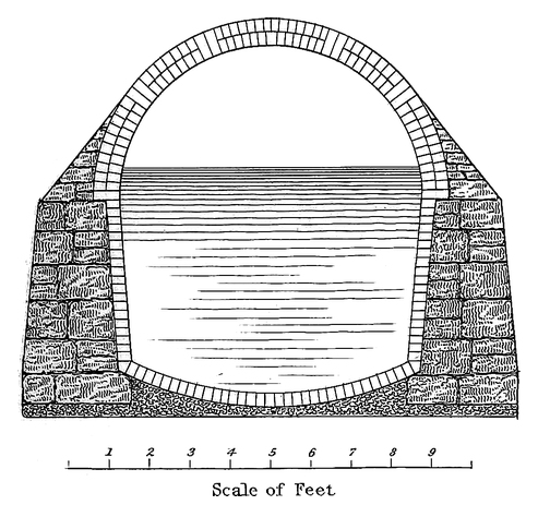 These Aqueducts were generally built of stone and covered by arches or large flat stones. At certain distances15 vents were provided to discharge the water from the channel-way; and cavities were formed, into which the water was precipitated, and where it remained till its mud was deposited, and ponds in which it might purify itself.