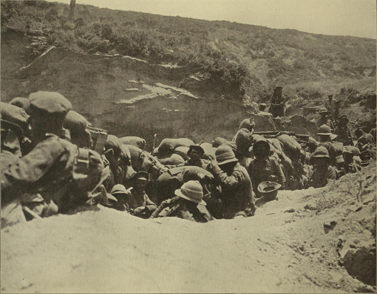 All along the line they had dug themselves in securely, and remained immovable. The Turks threw away thousands of men in fruitless assaults on the new positions; occasionally the British or the French by sudden rushes captured here and there an enemy trench and scored small local successes, but more and more the fighting became a matter of reconnaissance, of sapping and mining, till by the first week of June both sides had settled down to the dogged conditions of siege warfare.