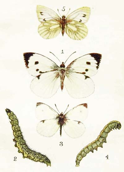 The caterpillars, of course, are quite as common as the moths. They are queer little stick-like creatures, and vary very much in colour, some being grey, and some light green, and some dark green, and some pale brown. But they always have several arrow-shaped dark markings upon their backs, with four or five pale blotches behind them. Look for them on nasturtium leaves, and also on those of cabbage and horseradish plants.
