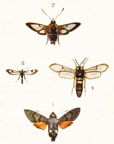 This moth well deserves its name, for across its greyish-brown or reddish-brown front wings its has two broad bands of golden-green, which shine just like a piece of highly polished brass. It is “double-brooded,” coming out first in June and then again in August, and flies soon after sunset on warm, still evenings. If you want to catch it, the best place to look for it is over beds of nettles, where you may often see it flying backwards and forwards until it is too dark to see at all. But sometimes it will fly through an open window into a lighted room, and buzz about in the most excited way round the lamp or the gas-flame.