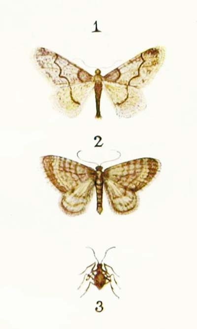 The caterpillar of this moth is a very pretty little creature of a pale green colour, with a broad white line along the back and a bluish-white line below it; then a yellow line below that; and then a row of orange spots. You may sometimes find it in August, feeding on the leaves of fir trees.