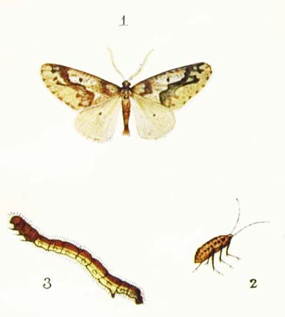 The caterpillar of this moth is one of the “loopers,” and is dark brown in colour, with lighter markings, and with two little humps on its back. Look for it on the leaves of birch, lime, elder, oak, and fruit trees during the month of June. About the first week in July it spins a little silken cocoon, and turns into a light brown chrysalis, with a few whitish markings.
