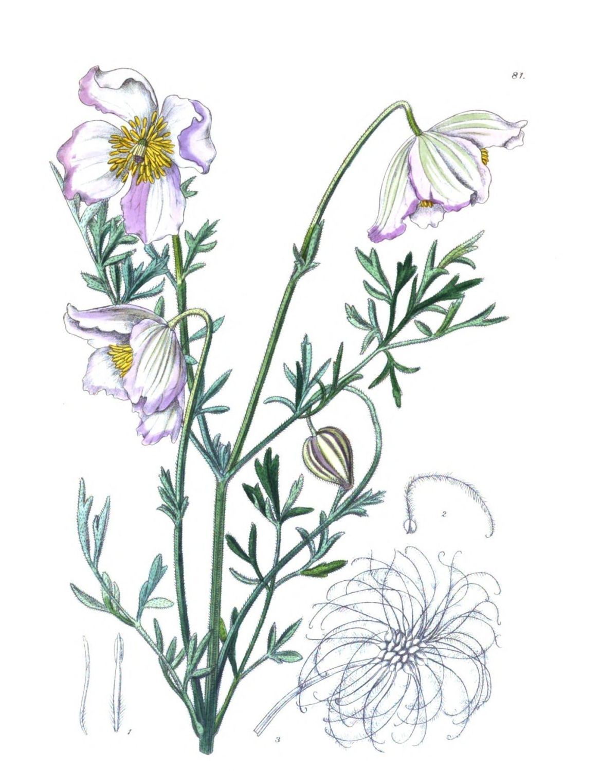 Plate 81.—Fig. 1, stamens, front and side view; Fig. 2, a single carpel; Fig. 3, fruits with the persistent styles.