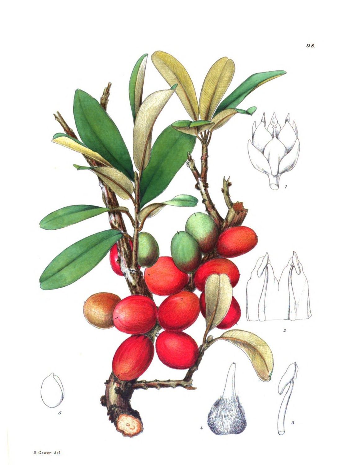 Plate 109.—Fig. 1, bud; 2, median longitudinal section of flower; 3, pistil; 4, fruit..