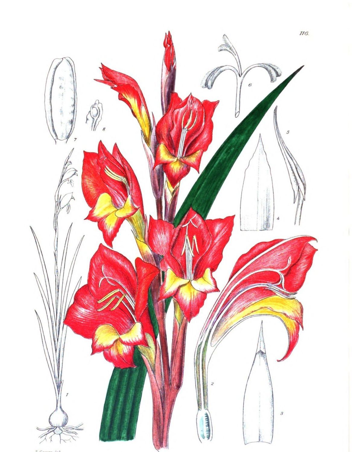 On Plate 6 we figured a variety of this magnificent species of Gladiolus, which differs from our present plant not only in the colouring of the flower, but also in the size of the perianth-segments.