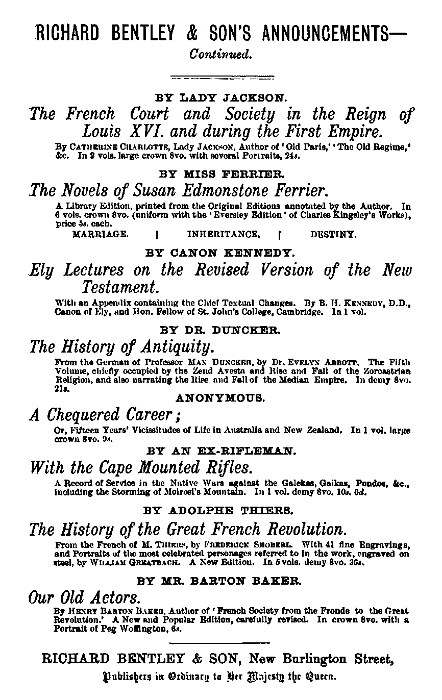RICHARD BENTLEY & SON, NEW BURLINGTON STREET