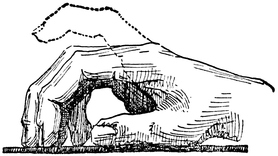 How are the fingers this week? Did they feel effect of starting regular practice? Even if they did, the temporary lameness should be gone by now. And we must continue these same movements another week. Pluck, remember, is that spirit in man which fails to understand despair—which keeps a man up even when he seems to be down. Do not falter. Keep everlastingly at it.