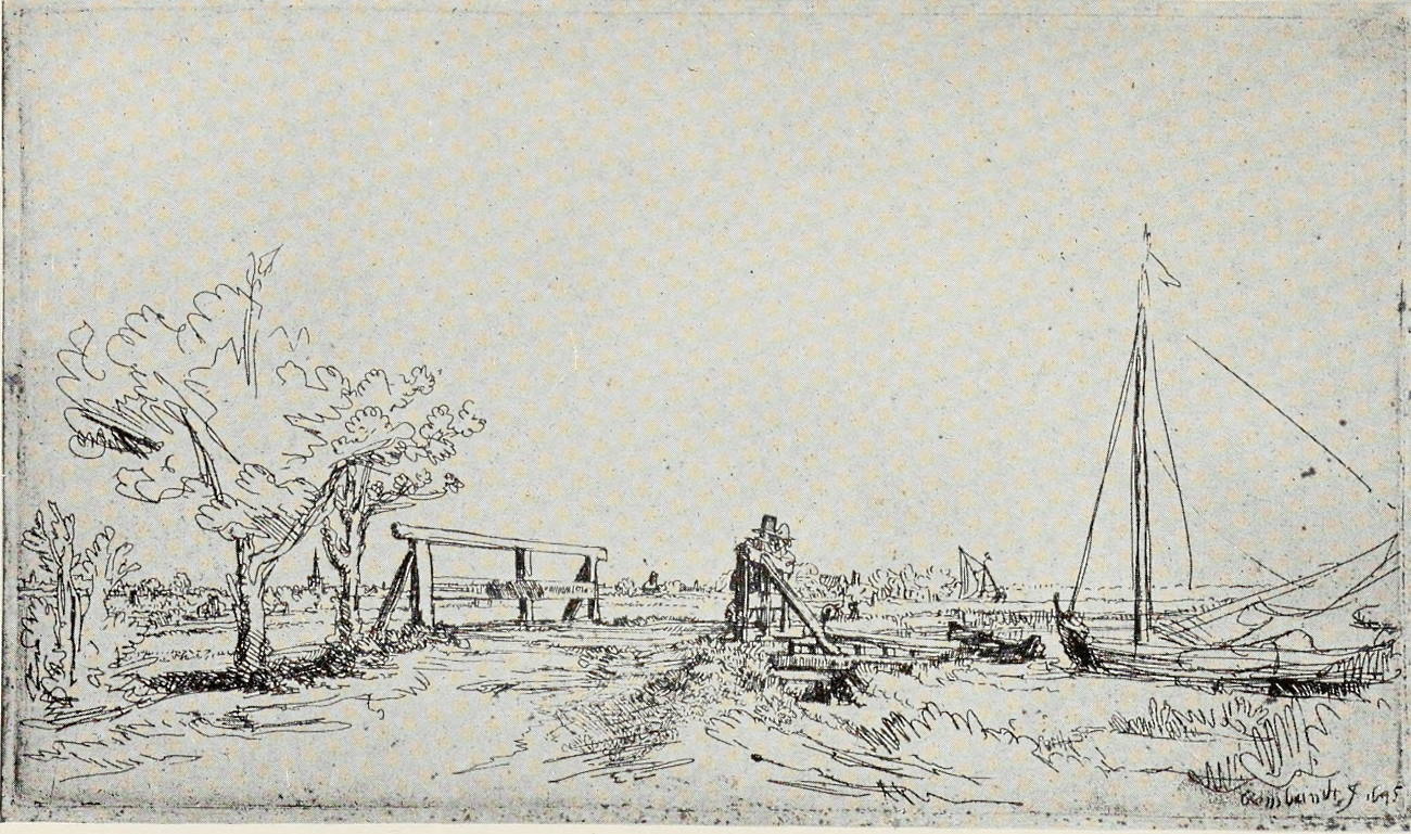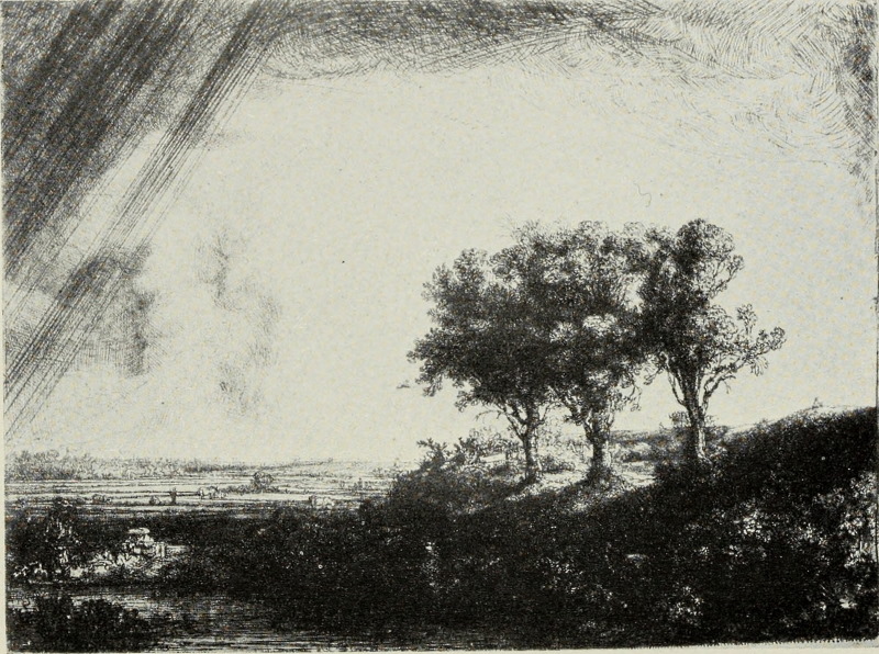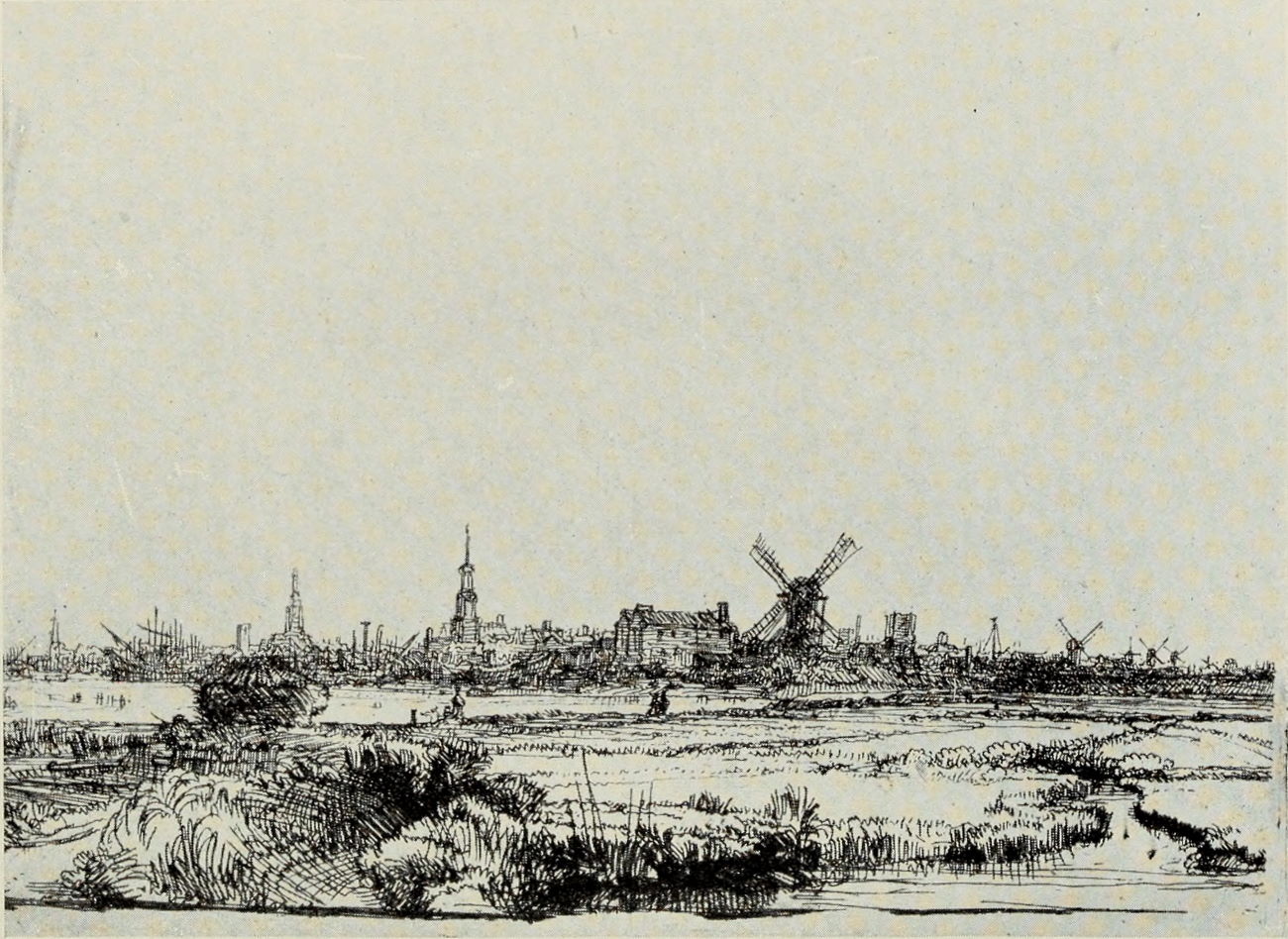 “You have only to see the prints to know it.” Well, let us look at two of them: Rembrandt’s View of Amsterdam, of 1640, and Whistler’s Zaandam. “Why drag in Velasquez?” the master of[Pg 274] the gentle art of making enemies is reported to have said, upon one historic occasion. This time, so far as landscape etching is concerned, may it not be Rembrandt’s turn to say, “Why drag in Whistler?”