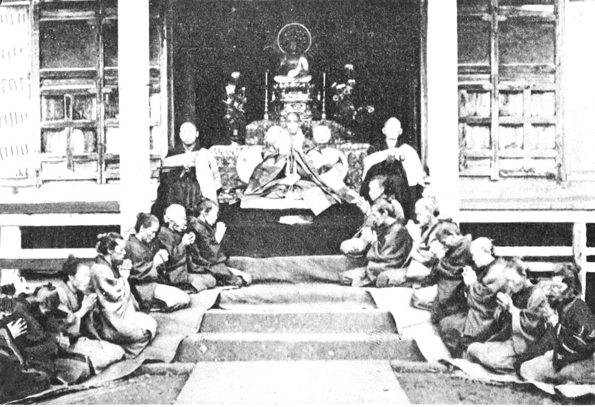 It would appear that though the Shintō temples did not want worshippers who freely contributed alms to the support of the priests, yet that since the abolition of the Catholic worship, and as a sort of security against it, every Japanese was required to enroll himself as belonging to some Buddhist sect or observance.