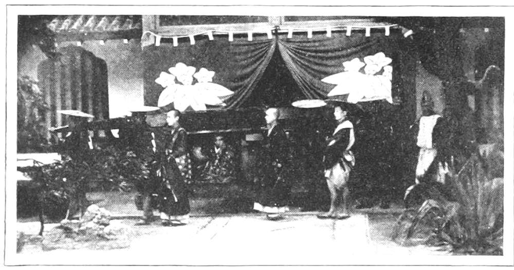 “Courtesans only, but no other women, shall be admitted. Only the ecclesiastics of the mountain Kōya shall be admitted. All other priests, and all Yamabushi, shall stand excluded.” (Note by Kämpfer. —Kōyais stated to be a mountain near Miyako, a sanctuary and asylum for criminals, no officers of justice being suffered to come there. Its inhabitants, many thousand in number, lead an ecclesiastical life. All are admitted that desire it, or who fly there for shelter, and are afterwards maintained for life, if they can but bring in thirty taels for the use of the convent, and are otherwise willing to serve the community in their several capacities. These monks are not absolutely confined to this mountain, but many travel up and down the country in what manner or business they please. Very many of them betake themselves to trade and commerce.)