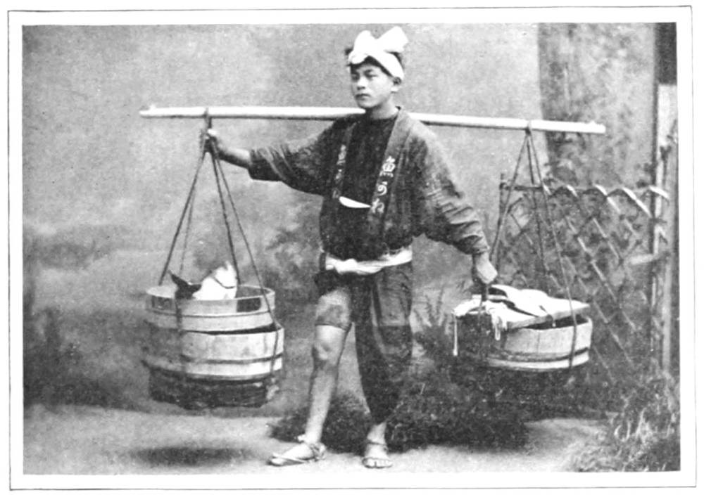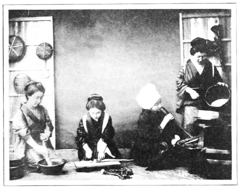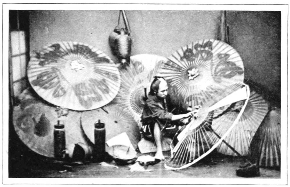 [64] The bosom of the gown is also used for the same purpose. For pocket-handkerchiefs, the Japanese carry about them a supply of small, square bits of soft paper, which they throw away as they use them.
