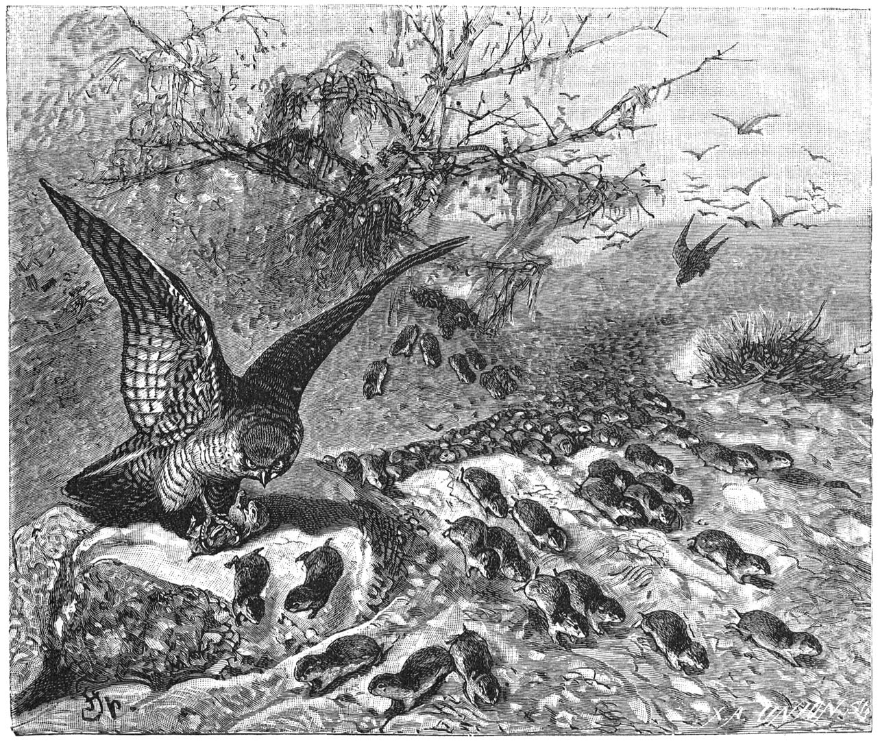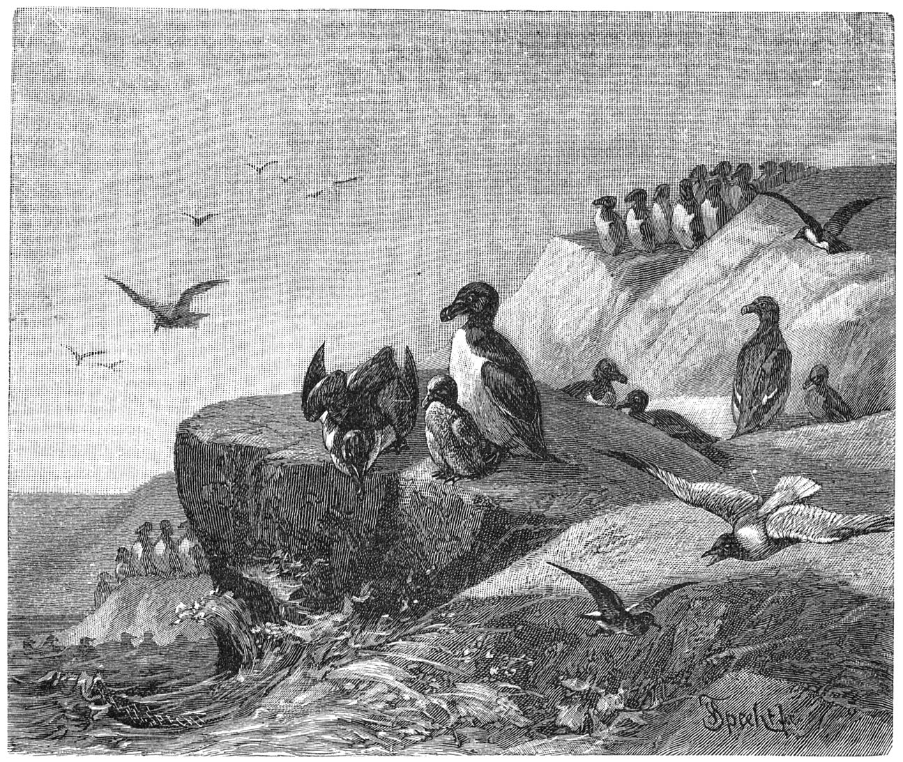 Stiller wordt het in het noorden, eenzamer wordt het land, verlaten is de zee. Is de lentenachtevening aangebroken, dan hebben bijna alle vreemde vaartuigen het oogstveld verlaten en zijn de visschen wederom naar de diepten des Oceaans teruggekeerd. Maar reeds zendt de zee nieuwe kinderen uit, om nogmaals de sonten, bochten en fjorden, en nu niet deze alleen, maar ook de scheren en eilanden met leven te bezielen; weldra glinsteren hier millioenen heldere vogeloogen en gluren deze van de hoogten der klippen, aan wier voet het zoo even geschetste winterleven heerschte, naar beneden op de zee.