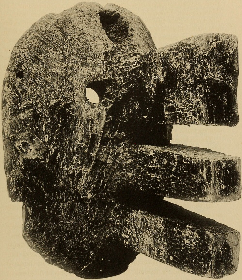 In pl. I is reproduced in colors the skull mask, and in pl. XVIII, fig. 1, the knife with handle. Reference to these is made on p. 141.
