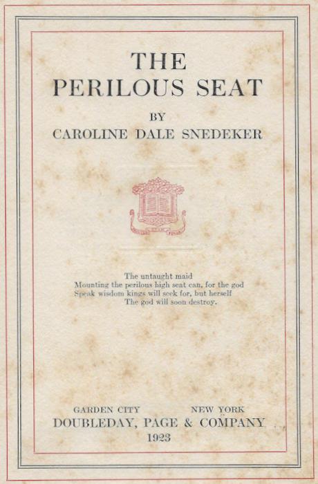 The choosing of laws, the unexpected setting aside of old laws which in this new land were found to be ill-fitted, the keeping of the council high purposed and pure. These were her duties. Theria did not sit with the council, but her advice was paramount. As former priestess of Apollo and seer of a vision, she exercised a power which as mere woman she could never have attained.