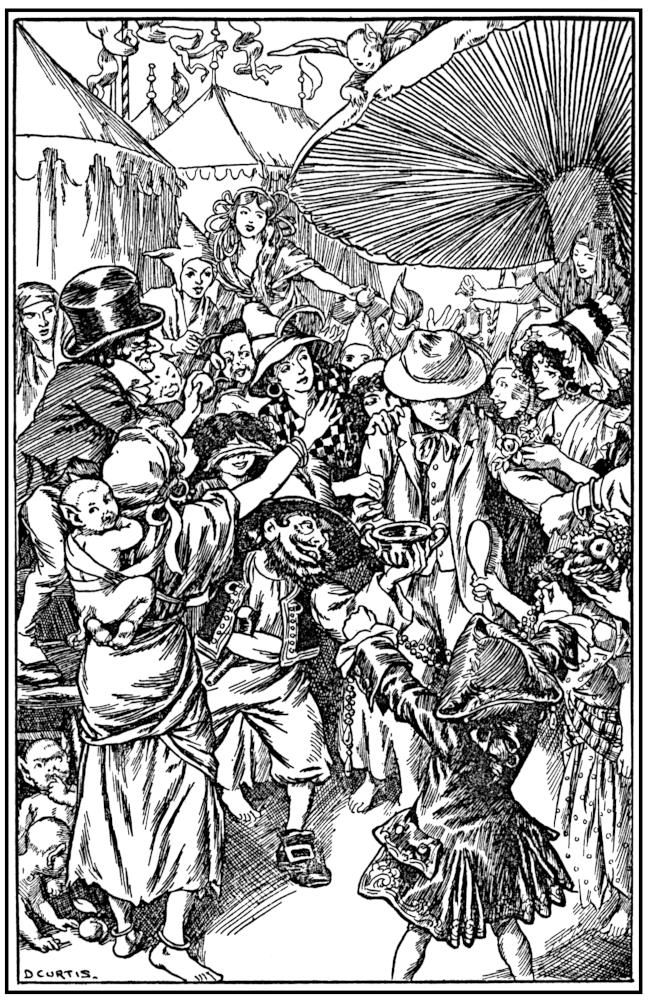 After this a splendid feast was served under the great dome. The other fairy feasts that Jack had seen were nothing to it. The prince[Pg 191] and his dame sat at one board, but Mopsa sat at the head of the great table, with the two Jacks one on each side of her.