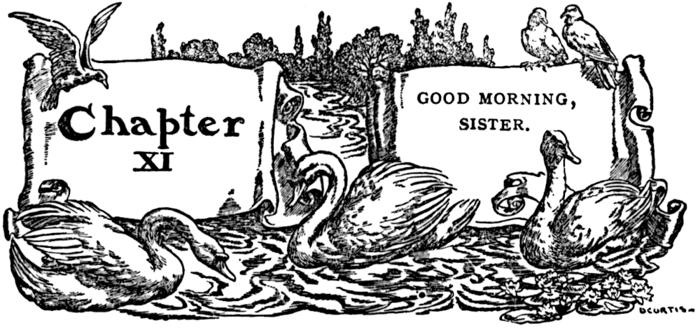 “Good-bye!” she said; “make haste and run in, for the dews are falling;” and before he could ask her one question, or even thank her, she made a wide sweep over the grass, beat her magnificent wings, and soared away.