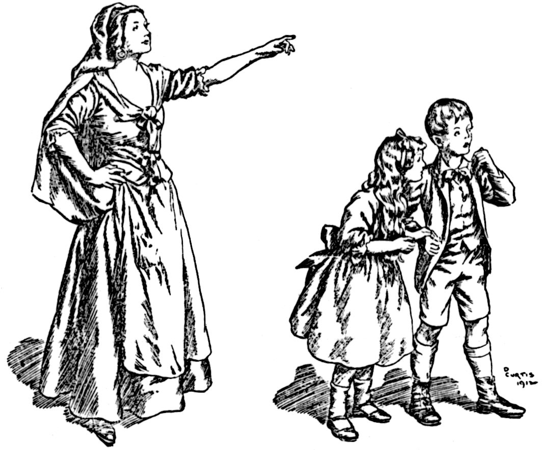 At this moment Jack observed that a strange woman was standing among them, and that the train-bearing fairies fell back, as if they[Pg 188] were afraid of her. As no one spoke, he did, and said, “Good morning!”