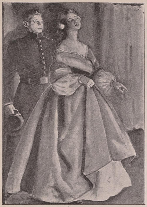 “Of course I am,” she answered, slipping off the seat, “and I’ve got to wear just what I have on. To my dying day it will be a mortification.[126] It’s the only decent gown I’ve got, and all on account of this man and his friends,” and she turned with a merry laugh to the Lieutenant, now standing and slightly leaning against the window.