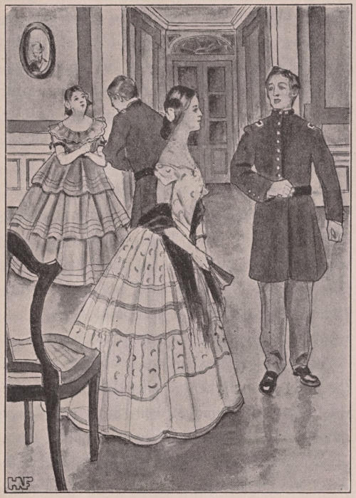“I am giving you the light of my life, Bobbie,” he said, putting his hand on the young man’s shoulder, as he stood pleading his cause, just two days before they received orders to join H.’s regiment at C—, “and you must wait, my man, until she is a little older—she is so young yet! Perhaps”—he cleared his throat and went on after a minute—“perhaps, after I leave here, I may never come back; but remember always, that my daughter’s happiness is in your power, and that I put into your hands the most sacred trust one[56] man can give another. I charge you to guard it well.”