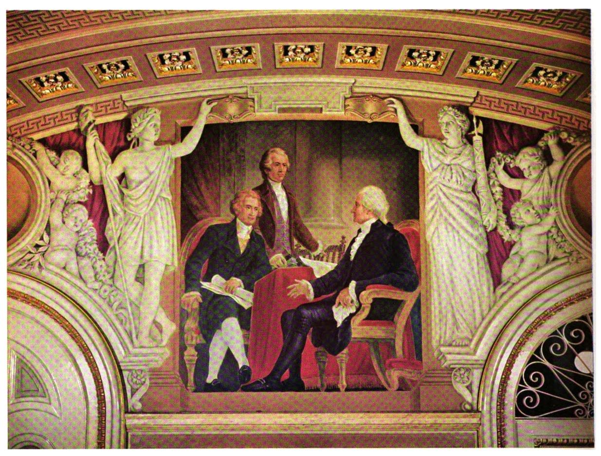 Nov. 29, 1872—For approximate estimate for painting picture of Washington, Jefferson, and Hamilton on the walls of the Senate Reception Room—$250.00